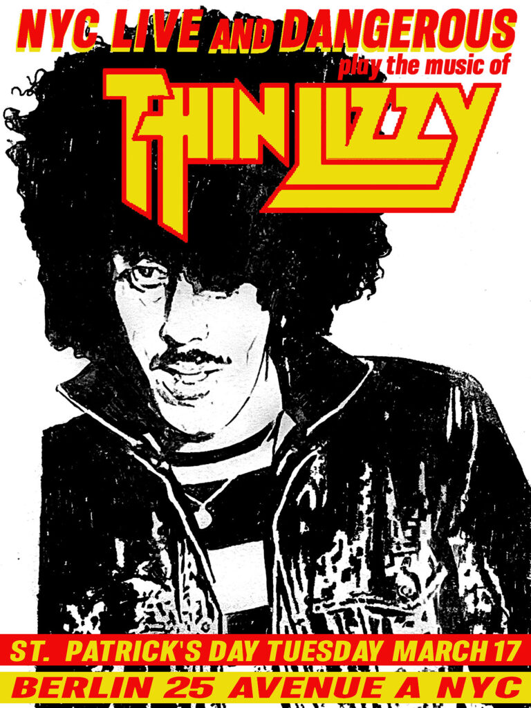 On St. Paddy’s Day eve, March 17th, Alex will be strapping on his trusty old bass once again, something he’s only sporadically done in the last bunch of years live, playing on a 6 pack of songs in a cool tribute to the great Irish rock band Thin Lizzy. The night is going to feature a who’s who of amazing local musicians and singers. Come through. NYC Live and Dangerous – A Thin Lizzy Tribute, at Berlin 145 East 2nd Street under 2A. Organized by Dave Derby (Dambuilders, and self-proclaimed “Lizzy Head”). Doors at 7pm, Thin Lizzy trib rocking at 9.